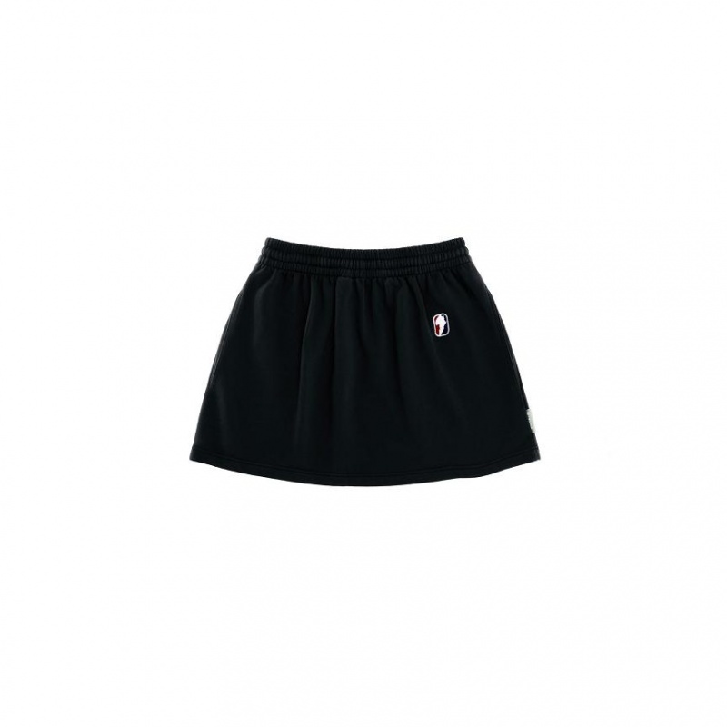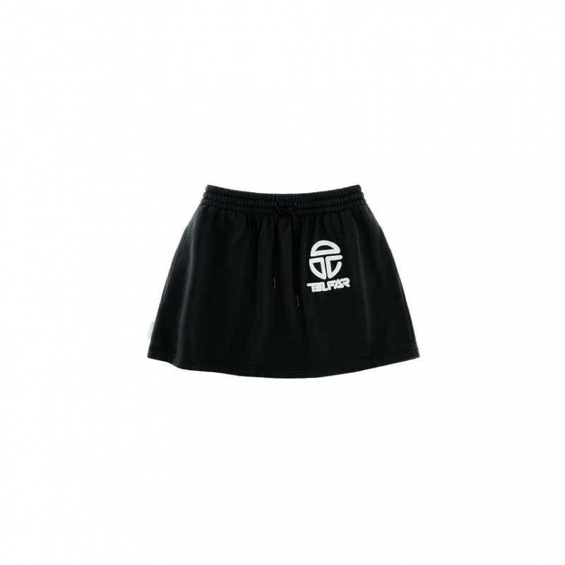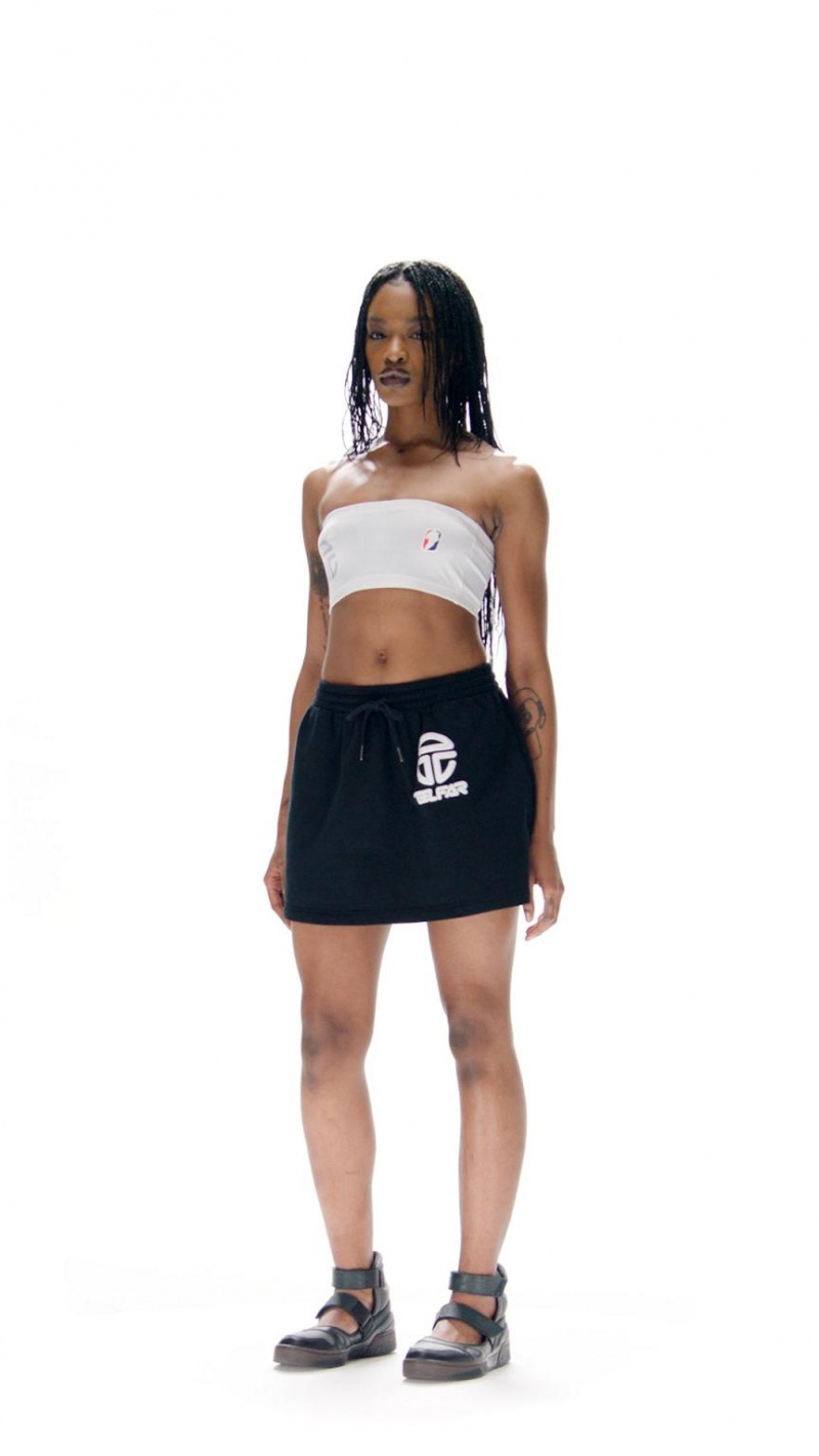 Mini-length Sweatskirt with drawstring waist, puff-print Performance and embroidered Afro-Sport insignia.